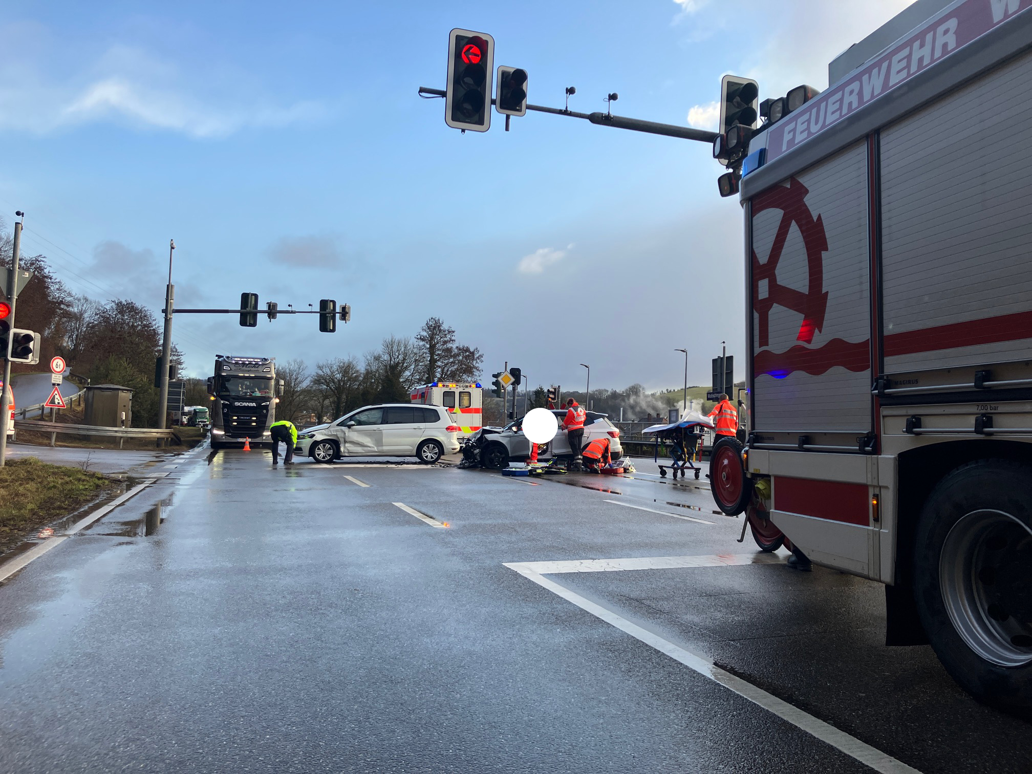 Am Dienstag, 17. Februar 2026, kam es gegen 08.25 Uhr zu einem Verkehrsunfall an der Ampelkreuzung von der Hauptstraße in die Horheimer Straße (B314). Nach bisherigen Erkenntnissen soll eine 31-jährige VW- Fahrerin von der Hauptstraße in die B314 eingefahren und mit einer 26-jähigen Seat-Fahrerin zusammengestoßen sein. Dadurch wurden beide Fahrerinnen leicht verletzt und zur weiteren Behandlung durch den Rettungsdienst in ein Krankenhaus transportiert. An beiden Autos entstand Sachschaden von insgesamt ungefähr 16.000 Euro. Neben dem Rettungsdienst und der Polizei war auch die Freiwillige Feuerwehr vor Ort im Einsatz. Die B314 musste zeitweise voll gesperrt werden. Die Unfallursache ist derzeit noch unklar, die Ampelanlage war in Betrieb.